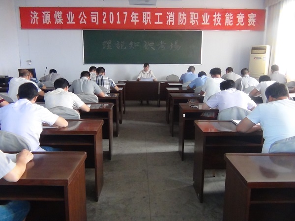 此次競賽分理論考試和實操競賽兩部分,上午進行了理論考試,下午在魯泰能源籃球場開展了實操比賽。實操比賽設置了100米跑、搬運送水、400米消防接力和抬式救人操四個項目。